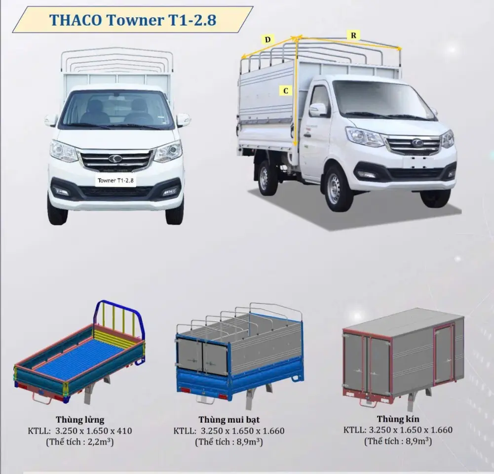 Thông số kĩ thuật của Xe Tải Thaco Frontier TF220 Thùng Mui Bạc